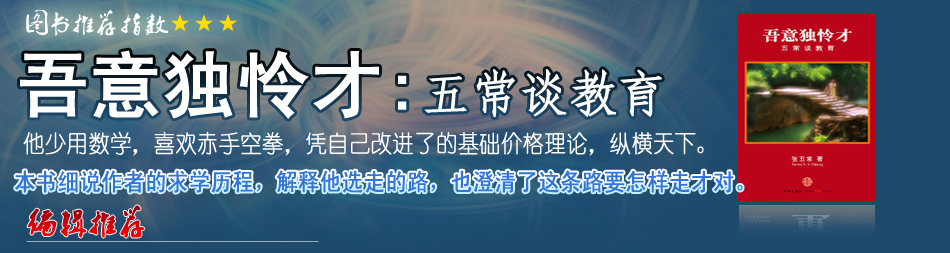 張五常教授旅居美國,上世紀(jì)80年代回中國香港執(zhí)教,并將自己身處中美不同的教育環(huán)境下的求學(xué)經(jīng)歷和教育理念差異著書論述。本書從教育理論、求學(xué)方法、個人求學(xué)經(jīng)歷、教育制度以及對子女的教育方法多角度地闡述了中西方教育制度和思維方法的差異,進(jìn)行了深刻地對比和分析,如言辭犀利地抨擊港大“校外主考”制、公立大學(xué)存在的弊端等。 張教授的觀點別開生面,他認(rèn)為教育就應(yīng)該從學(xué)習(xí)興趣入手,從而漸入佳境,就如同他在洛杉磯加州大學(xué)的圖書館廢寢忘食、不分晝夜地啃書一樣,不依附于傳統(tǒng)的教育思想和規(guī)則,培養(yǎng)個人的創(chuàng)造性,這才是教育發(fā)展的未來前景。 |