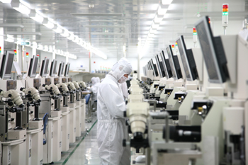 北京開發(fā)區(qū)星網(wǎng)工業(yè)園匯聚了全球20多家頂級通信企業(yè),形成了全球獨一無二的零庫存“星網(wǎng)模式”。圖為開發(fā)區(qū)威訊公司生產(chǎn)線。 |