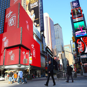 1月17日,美國(guó)紐約時(shí)報(bào)廣場(chǎng)的電子顯示屏正在播出《中國(guó)國(guó)家形象片——人物篇》。 當(dāng)日,由中國(guó)國(guó)務(wù)院新聞辦籌拍的《中國(guó)國(guó)家形象片——人物篇》在紐約時(shí)報(bào)廣場(chǎng)大型電子顯示屏上播出,中國(guó)各領(lǐng)域杰出代表和普通百姓在片中逐一亮相,讓美國(guó)觀眾了解一個(gè)更直觀更立體的中國(guó)國(guó)家新形象。