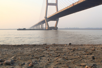 圖為2010年12月10日在江西省湖口縣境內(nèi)的鄱陽湖大橋附近岸邊拍攝的已經(jīng)干涸開裂的湖灘。新華社發(fā)(張俊