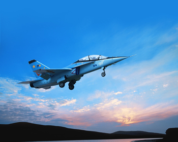 洪都集團(tuán)生產(chǎn)的L15高級(jí)教練機(jī)翱翔空中。 |