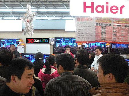 海爾彩電展示區(qū)人頭攢動。資料照片 |
