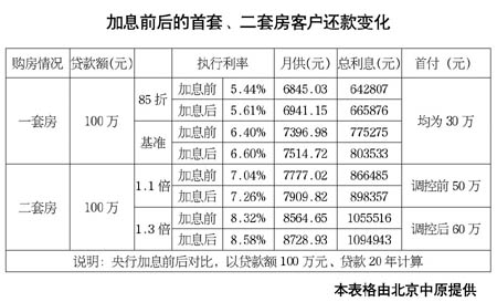 9日加息后利率、房貸變化表