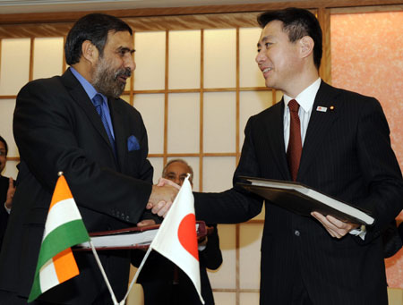 日本外務(wù)大臣前原誠(chéng)司與到訪的印度商業(yè)和工業(yè)部長(zhǎng)阿南德·夏爾馬分別代表兩國(guó)政府簽署了協(xié)定。兩國(guó)政要用“美妙”、“具有歷史性”等詞句評(píng)價(jià)此次簽署的協(xié)議。前原表示,希望以此為契機(jī),使兩國(guó)的戰(zhàn)略伙伴關(guān)系得到進(jìn)一步發(fā)展。夏爾馬表示,正處于快速增長(zhǎng)期的印度期待日本企業(yè)的進(jìn)駐。