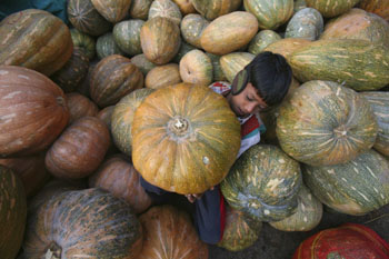 2010年12月3日,一名男孩在印度北部城市昌迪加爾的一家蔬菜批發(fā)市場內(nèi)搬運南瓜。2010年新興和發(fā)展中經(jīng)濟(jì)體的經(jīng)濟(jì)復(fù)蘇步伐明顯快于發(fā)達(dá)經(jīng)濟(jì)體,特別是以“金磚四國”——中國、印度、巴西、俄羅斯為代表的新興經(jīng)濟(jì)體的國內(nèi)生產(chǎn)總值增長率遠(yuǎn)高于美、日、英和歐元區(qū)內(nèi)的發(fā)達(dá)經(jīng)濟(jì)體,成為推動世界經(jīng)濟(jì)復(fù)蘇與增長的重要力量。新華社發(fā) |