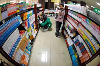 幾名學(xué)生正在書店內(nèi)挑選教材。新華社記者 彭昭之/攝 |