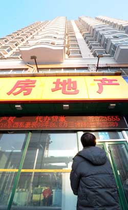 哈爾濱出臺“限購令”:有兩套住房不能再買房。圖為一位哈爾濱市民在一家中介公司查看房源信息。新華社記者 王松