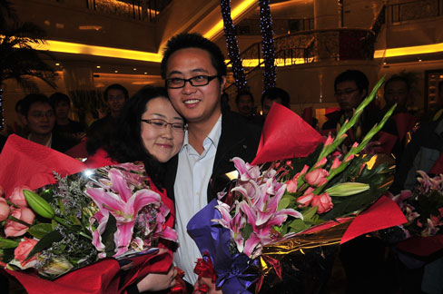 | 北京時間23日22點50分,包括22名中國石油天然氣管道局員工在內(nèi)的首批撤離利比亞中國公民安全回國。圖為石油管道員工胡浩和赴機場迎接他的妻子緊緊相擁。 |