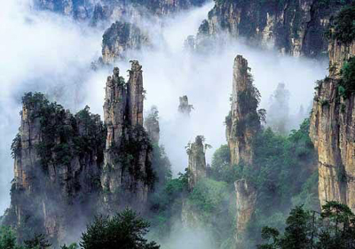 九寨溝看水,張家界看山。的確,在世界上其他任何地方,你都無法看到這樣的奇特景觀:三千奇風(fēng)峰拔地而起,八百溪流蜿蜒曲折。這里被譽(yù)為“擴(kuò)大的盆景、縮小的仙境”,“世外桃園”,“中國山水畫的原本”一切美好的詞語都被用來形容這里的美麗,但卻無法描述它帶給人們視覺上的震驚。 提起到深山里觀景玩水,取陰納涼避暑,人們肯定會(huì)想起張家界,其實(shí)袁家界才是張家界里真正的美景心臟。這里除了世外桃源般的美景,還有擁有三項(xiàng)世界之最的百龍觀光電梯,讓人急速穿梭于空中,如神仙般享受美景盛宴。 而因《阿凡達(dá)》取景于張家界的爭論,又著實(shí)讓這里火了一把,雖說有很多搞笑的因素在里面,但張家界群山美景,或云哈利路亞山的真貌,還真得來看一看才知。張家界的近鄰鳳凰,同樣是一個(gè)令人期待的小鎮(zhèn)。 鳳凰古城分為新舊兩個(gè)城區(qū),老城依山傍水,清淺的沱江穿城而過,紅色砂巖砌成的城墻佇立在岸邊,南華山襯著古老的城樓,城樓還是清朝年間的,銹跡斑斑的鐵門,還看得出當(dāng)年威武的模樣。北城門下寬寬的河面上橫著一條窄窄的木橋,以石為墩,兩人對面都要側(cè)身而過,這里曾是當(dāng)年出城的唯一通道。 這座曾被新西蘭作家路易艾黎稱作中國最美麗的小城之一的“鳳凰古城”建于清康熙時(shí),這顆“湘西明珠”是名副其實(shí)的“小”,小到城內(nèi)僅有一條像樣的東西大街,可它卻是一條綠色長廊。 交通:張家界至鳳凰汽車每天兩趟,早上08:30分一趟,中午14:30一趟,車程四個(gè)小時(shí)。 特色菜——三下鍋。所謂的三下鍋其實(shí)就是一種很方便的干鍋,它是由三種主料做成的,燉著不放湯的火鍋。鳳灣大橋附近的那個(gè)“胡師傅三下鍋”很有名氣。另外,北正街一條街,有很多獨(dú)特風(fēng)味可以品嘗。