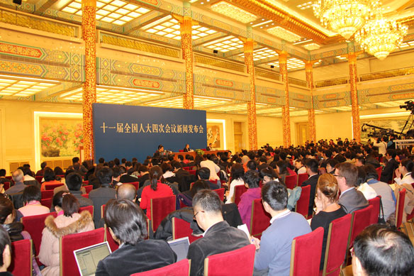 十一屆全國(guó)人大四次會(huì)議新聞發(fā)布會(huì)全景,大會(huì)發(fā)言人李肇星就會(huì)議議程和人大工作相關(guān)問(wèn)題回答中外記者提問(wèn)