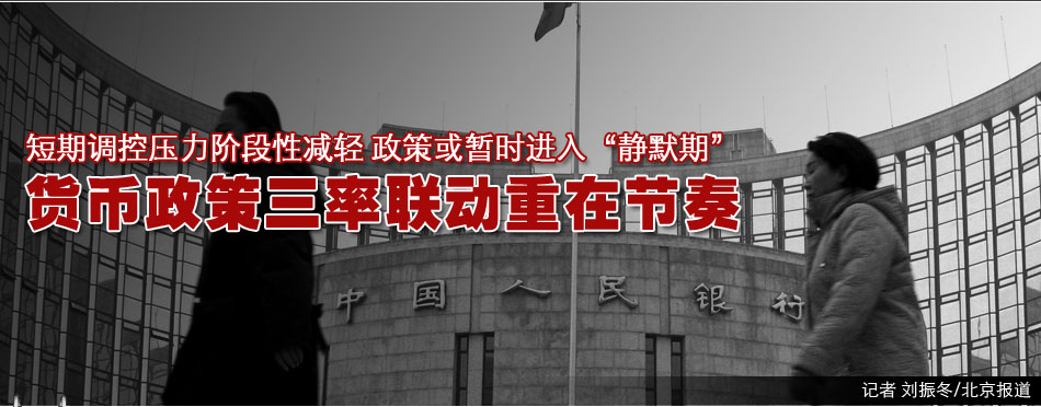 “GDP增長(zhǎng)目標(biāo)8%、CPI控制目標(biāo)4%、廣義貨幣量(M2)增速目標(biāo)16%”——政府工作報(bào)告中的這3個(gè)數(shù)字,基本勾勒出今年預(yù)期的經(jīng)濟(jì)走勢(shì)和貨幣調(diào)控目標(biāo)。與去年的“8%、3%、17%”相比較,2011年的這組數(shù)字中的“一增一減”,體現(xiàn)了貨幣政策回歸常態(tài)的明確導(dǎo)向,也反映了通脹走勢(shì)對(duì)政策取向的影響。 年初以來,為了“防通脹、穩(wěn)物價(jià)”,貨幣政策加大了回歸常態(tài)的力度,出現(xiàn)準(zhǔn)備金率、利率和匯率的“三率齊動(dòng)”。二季度是否還會(huì)保持如前的緊縮力度?一些經(jīng)濟(jì)學(xué)家前瞻性地預(yù)測(cè),隨著通脹擔(dān)憂情緒的減弱,在總需求呈現(xiàn)平穩(wěn)回落的態(tài)勢(shì)下,短期調(diào)控壓力將階段性減輕,政策將暫時(shí)進(jìn)入一段難得的“靜默期”,未來的重點(diǎn)在于如何把握三率聯(lián)動(dòng)的節(jié)奏。