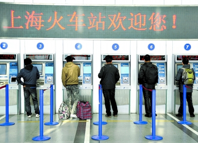 圖為3月8日旅客在上;疖囌咀灾燮睓C(jī)前購(gòu)買(mǎi)高鐵車票!