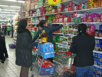 顧客在北京家樂(lè)福超市內(nèi)選購(gòu)康師傅方便面。記者 殷麗娟 攝 |