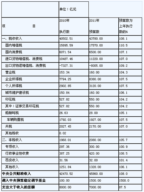 關(guān)于2011年中央公共財政收入預(yù)算的說明