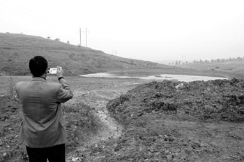 昆明市環(huán)保局政策法規(guī)處處長(zhǎng)張永軍則告訴記者,即便是這三個(gè)大的收集池,有的僅僅作了簡(jiǎn)單的防滲處理,有的連簡(jiǎn)單防滲處理都沒(méi)做過(guò)!皬某剡叺乃痪就能看出,水已經(jīng)滲下去了不少!睆堄儡娊榻B說(shuō),污染物主要是豬糞便和沖洗豬舍后流出的水!耙氖侵?chē)?公里范圍內(nèi)就有三個(gè)水庫(kù),有的是飲用水,有的是備用水源,有的是農(nóng)灌水,一旦污染后果不堪設(shè)想。因?yàn)榫退戕r(nóng)灌水也有最基本的指標(biāo),更別提飲用水了。”