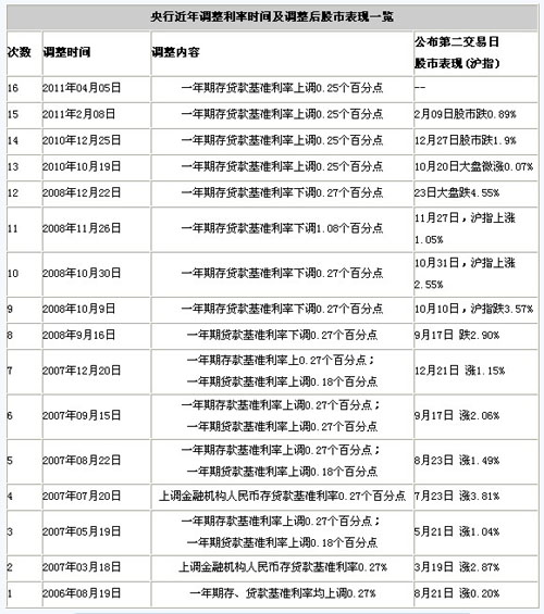 近期利率調(diào)整后股市表現(xiàn)一覽