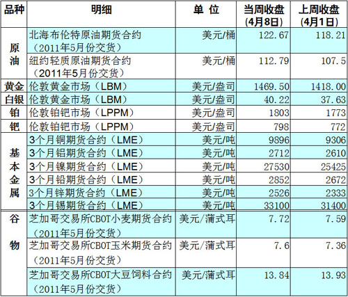 國(guó)際大宗商品期貨價(jià)格明細(xì)表[04-11]