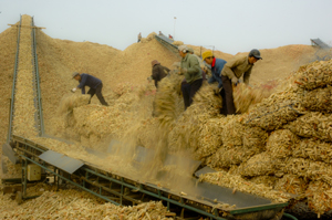 2003年5月,全國(guó)面粉行業(yè)的巨頭華龍公司投資5000萬(wàn)元興建的面粉廠在伏道鄉(xiāng)開(kāi)工,當(dāng)年10月投產(chǎn),年加工優(yōu)質(zhì)小麥20萬(wàn)噸,本地小麥隨到隨收,而且每公斤的價(jià)格比周邊地區(qū)要高。僅此一項(xiàng),農(nóng)民一畝地就能增收二三十元。企業(yè)附近的伏道、白營(yíng)等幾個(gè)鄉(xiāng)鎮(zhèn)還和企業(yè)簽訂了20萬(wàn)畝的小麥訂單,糧食沒(méi)下種就找到了“婆家”。這一筆合同簽下來(lái),幾近全縣小麥產(chǎn)量的一半。企業(yè)生產(chǎn)的下腳料也被附近農(nóng)民悉數(shù)拉走,做起了飼料加工的生意。同時(shí),100多名“泥腿子”進(jìn)廠成了上班族。世界500強(qiáng)企業(yè)新加坡益海嘉里集團(tuán)在湯陰投資6000萬(wàn)美元建成的項(xiàng)目,每天加工轉(zhuǎn)化小麥1200噸,每年要吃掉90萬(wàn)畝小麥的產(chǎn)量,年銷(xiāo)售收入達(dá)6億元。公司項(xiàng)目經(jīng)理?xiàng)钸M(jìn)東口氣很大:“湯陰及周邊縣的小麥我們都包了!