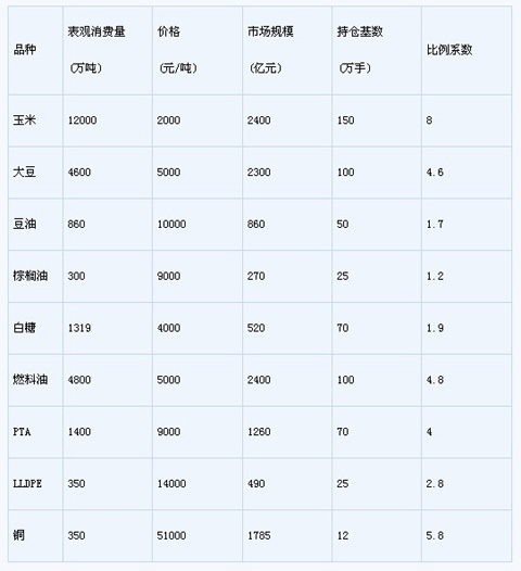 表5 國內現(xiàn)有典型品種的市場數(shù)據(jù)與持倉基數(shù)對照
