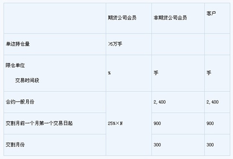 4.期貨公司會員、非期貨公司會員和客戶的焦炭期貨合約在不同時期的限倉比例和持倉限額具體規(guī)定如下: