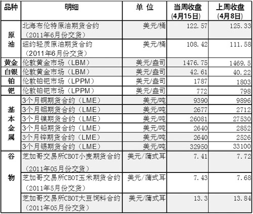 國際大宗商品期貨價格明細(xì)表[2011-04-18]