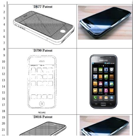 | 蘋果在訴狀中將自己的專利與三星手機(jī)進(jìn)行對比 |
