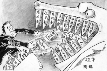 類(lèi)似的情況并不僅僅發(fā)生在商場(chǎng)。在頗費(fèi)了一番周折之后,國(guó)內(nèi)一家食品公司的銷(xiāo)售部負(fù)責(zé)人小王(化名)終于同意和《經(jīng)濟(jì)參考報(bào)》記者聊一聊!艾F(xiàn)在我們對(duì)超市收費(fèi)都是敢怒不敢言”,采訪中他再三強(qiáng)調(diào),“千萬(wàn)不要寫(xiě)得太清楚,不然以后生意沒(méi)得做了。”