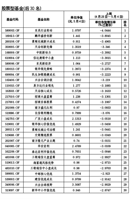 東吳基金管理有限公司旗下,2008年下半年上市的東吳行業(yè)輪動以-4.04%的凈值增長率成為本周(4月28日-5月4日)股票型基金收益倒數(shù)第一,其今年年漲幅為-8%。