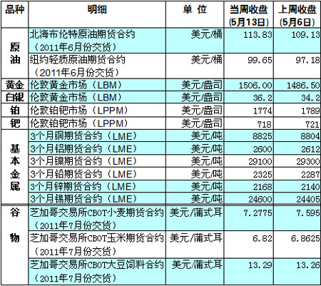 國(guó)際大宗商品期貨價(jià)格明細(xì)表[2011-05-16]