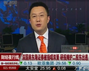 | 315pk:東海證券、國泰君安在股市里非法操縱股價的問題最嚴重。許多股民在就發(fā)現(xiàn)了這個問題。監(jiān)管層至今才發(fā)現(xiàn),可見這是什么樣的監(jiān)管隊伍。