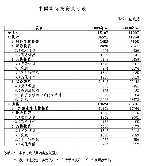 日前,國(guó)家外匯管理局公布了2010年末中國(guó)國(guó)際投資頭寸表。