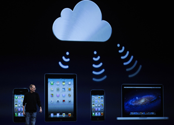 在舊金山舉行的蘋果全球開發(fā)者大會上,正在休病假的蘋果首席執(zhí)行官史蒂夫·喬布斯親自登臺介紹了iCloud,并將它稱為蘋果的“下一個偉大遠(yuǎn)見”。在用戶對使用蘋果iOS系統(tǒng)的移動設(shè)備進行充電時,系統(tǒng)會自動將用戶的文檔、購買的音樂、應(yīng)用程序、照相簿和系統(tǒng)設(shè)置等進行云端備份,再自動推送到用戶的所有設(shè)備,用戶在蘋果的智能手機、平板電腦和臺式機上都可以同步獲得這些內(nèi)容。每位用戶目前可以獲得5G的免費存儲空間,從蘋果購買的音樂、應(yīng)用程序和電子書不占用免費空間,收費的大容量云存儲方案將在今年秋季推出。