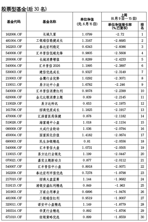 長城基金管理有限公司旗下,2007年2月成立的長城品牌優(yōu)選以-2.72%的凈值增長率成為本周(6月9日-15日)股票型基金收益倒數(shù)第一,其今年年漲幅為-13.11%。