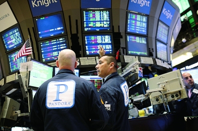 6月15日,美國(guó)紐約證券交易所的工作人員在交易大廳內(nèi)忙碌。