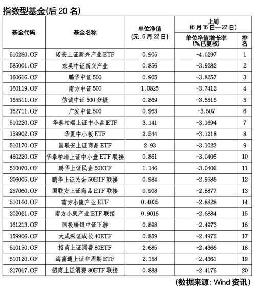 諾安基金管理有限公司旗下的,2011年4月成立的諾安上證新興產(chǎn)業(yè)ETF以-4.03%的凈值增長率成為本周(6月16日-22日)指數(shù)型基金收益倒數(shù)第一,其今年以來年漲幅為-7.8%。
