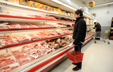 美國商務(wù)部27日稱,由于擔憂就業(yè)形勢低迷及物價上漲,美國消費者大多將消費計劃延期,5月個人消費支出月率持平,增幅創(chuàng)2010年6月以來最低水平。而5月個人消費支出價格指數(shù)較上年同期上升了2.5%,創(chuàng)2010年1月來最大年率漲幅。這意味著美國經(jīng)濟不僅復(fù)蘇仍舊乏力,而且通脹威脅不減。 圖為一位男子在紐約布魯克林的一家超市里購買食品。