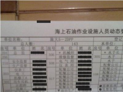 如果按照這張圖片顯示的住宿名單來(lái)看,這個(gè)海上平臺(tái)無(wú)疑存在超員的現(xiàn)象,該網(wǎng)友稱,“一個(gè)有2艘救生艇的平臺(tái),一共可以乘坐120人,怎么有143人在平臺(tái)上”。他表示,如果海面發(fā)生漏油火災(zāi),那么剩下的23個(gè)人將得不到有效救援。他說(shuō),如果剩下的23人不乘坐救生艇,而是乘坐非密閉的救生筏,那么在海面有火有毒的環(huán)境下,這些人的性命堪憂。