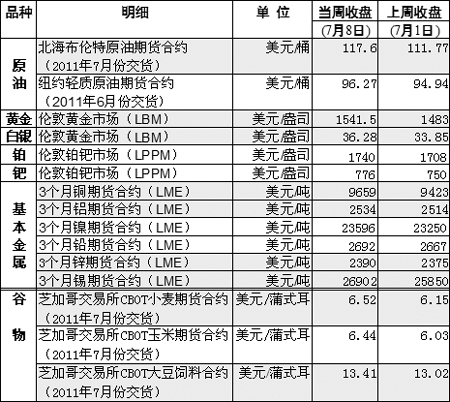 上周,中國(guó)、歐洲先后宣布加息,美國(guó)經(jīng)濟(jì)數(shù)據(jù)好壞參半,紐約油價(jià)沖高回落,全周漲幅超過(guò)1%。黃金價(jià)格每盎司累計(jì)上漲59美元,漲幅達(dá)4%。