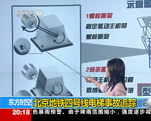 7月5日早晨,在北京地鐵四號(hào)線動(dòng)物園站,因上行電梯突然發(fā)生設(shè)備故障而逆行,正在搭乘電梯的部分乘客出現(xiàn)摔倒情況,造成1人死亡、30人受傷。北京市質(zhì)監(jiān)局公布了初步調(diào)查結(jié)果,事故的直接原因是“由于固定零件損壞,扶梯驅(qū)動(dòng)主機(jī)發(fā)生位移,造成驅(qū)動(dòng)鏈條脫落,扶梯下滑”。 | | |