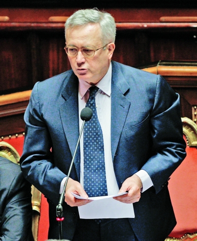 圖為意大利經(jīng)濟(jì)部長特雷蒙蒂14日在參議院就財政緊縮計(jì)劃發(fā)表講話。