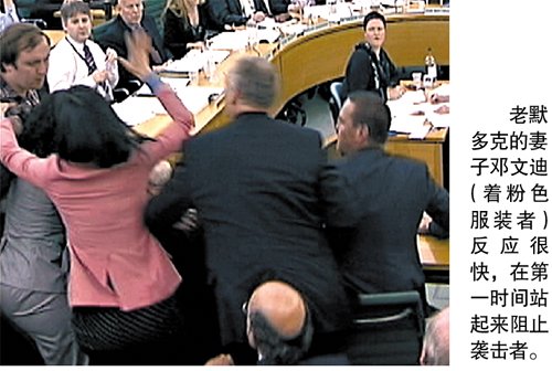 老默多克的反應則沒有這么快。不過坐在第二排的默多克妻子鄧文迪,在第一時間站起來阻止襲擊者。英國媒體形容鄧文迪的這一下意識反應“猶如老虎般迅猛”。