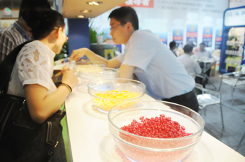 第46屆全國新特藥品交易會暨2011中國藥店展覽在南京開幕,來自全國40多家企業(yè)的100多個(gè)2008年后獲批的新藥齊聚南京。圖為交易會現(xiàn)場參展藥商展出的新藥。新華社發(fā)