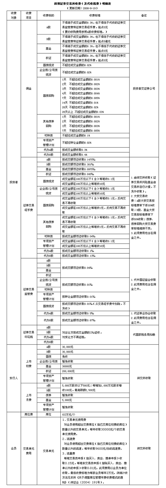 深圳證券交易所收費(fèi)(及代收稅費(fèi))明細(xì)表