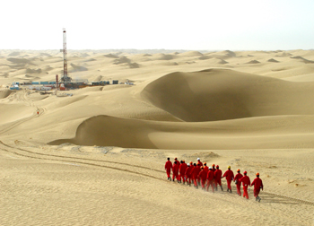 勘探開發(fā)人員在茫茫塔里木盆地尋找油氣。任國良/攝 |