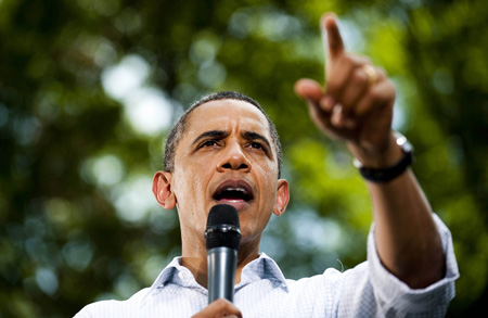 8月15日,美國總統(tǒng)奧巴馬在明尼蘇達州坎農福爾斯舉行的市民會議上講話。 奧巴馬當日說,黨派斗爭帶來的華盛頓政治僵局造成了許多不確定性,對經濟復蘇產生了負面作用。 近期美國兩黨就提高政府債務上限、削減赤字方案激烈爭斗,美國信用評級被下調且經濟復蘇放緩,國際市場對美國經濟增長前景信心下降。