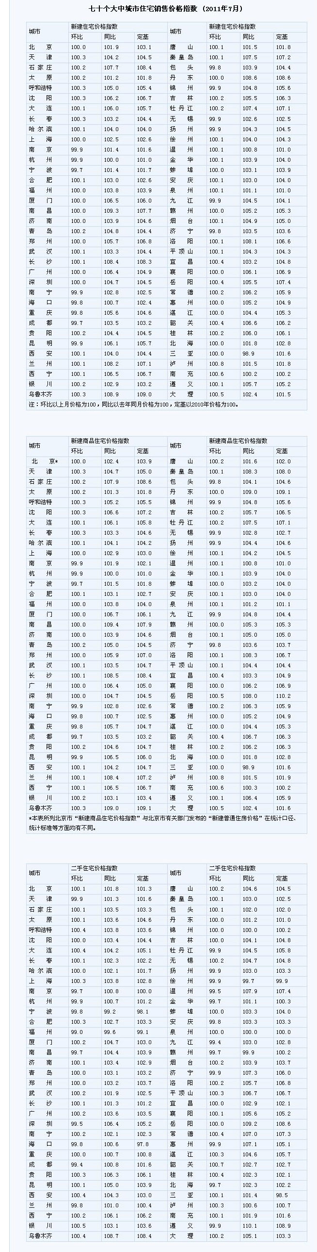 (二)與去年同月相比,70個(gè)大中城市中,價(jià)格下降的城市有4個(gè)。漲幅回落的城市有28個(gè),比6月份增加了4個(gè)。7月份,同比漲幅在5.0%以內(nèi)的城市有49個(gè)。