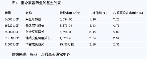 紫鑫藥業(yè)在進(jìn)軍人參產(chǎn)業(yè)之前,主營四妙丸、補(bǔ)腎安神口服液、活血通脈片、醒腦再造膠囊等醫(yī)藥產(chǎn)品,但銷售規(guī)模不大,缺乏強(qiáng)有力的競爭優(yōu)勢,公司業(yè)績與股價均表現(xiàn)平平。而其在2010年披上人參概念之后,公司公布的業(yè)績與股價均扶搖直上。近日,紫鑫藥業(yè)被爆出借道人參概念自買自賣進(jìn)而創(chuàng)下“驚人業(yè)績”的丑聞,于8月17日停牌。一旦該消息經(jīng)調(diào)查證明屬實(shí),紫鑫藥業(yè)必將陷入空前的經(jīng)營與信任危機(jī)中,股價的暴跌也將難以避免。 基金方面,根據(jù)基金二季報和紫鑫藥業(yè)半年報,配置了較多紫鑫藥業(yè)的基金有興全可轉(zhuǎn)債、泰達(dá)宏利成長、興全有機(jī)增長、浦銀安盛價值成長、華富成長趨勢。