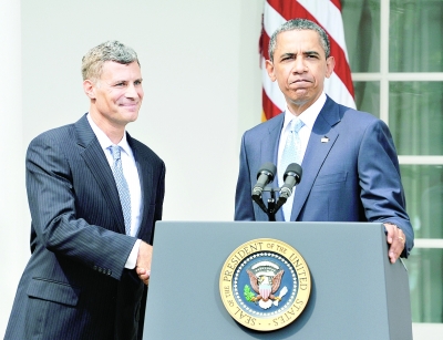 8月29日,在美國首都華盛頓白宮玫瑰園,美國總統(tǒng)奧巴馬(右)宣布提名普林斯頓大學教授阿蘭·克魯格(左)出任白宮經濟顧問委員會主席,接替已于本月早些時候離職的奧斯坦·古爾斯比!