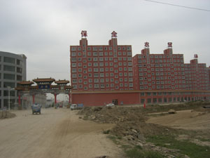 保全莊項目由15萬平方米蔬菜交易市場以及15萬平方米產權商鋪、住宅、公寓、商務寫字樓組成。2008年上半年,該項目高調亮相,一度被捧為內蒙古商業(yè)地產投資領域的“黑馬”。《經濟參考報》記者8月24日在現(xiàn)場看到,項目主體工程已基本完工,七個交易大廳被13幢商住樓、5棟商鋪圍成一圈。據(jù)相關人士介紹,該項目原來規(guī)劃建設冷鮮庫、深加工車間、倉庫、物流配送中心、農藥殘留檢測中心等配套設施,如今開發(fā)商已無力再投資建設,交易市場徒有一個“空殼子”,成了半拉子工程。