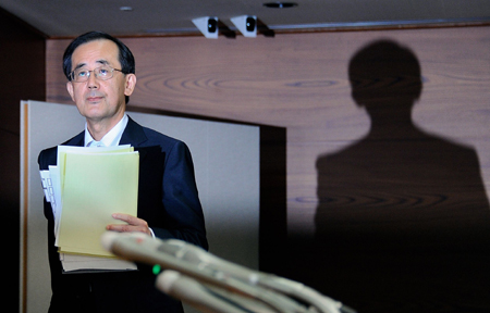 日本央行7日決定將基準利率繼續(xù)維持在零至0.1%的水平,但沒有出臺新的金融寬松措施。 日本央行發(fā)表的公報稱,大地震對企業(yè)生產(chǎn)供應(yīng)層面造成的制約已基本消除;生產(chǎn)和出口大致恢復(fù)到地震前的水準;2011年秋季以后,經(jīng)濟有望回到緩慢復(fù)蘇的軌道。市場人士預(yù)計,日本央行將視美聯(lián)儲本月貨幣政策會議結(jié)果,在10月的例會上決定是否追加金融寬松措施。 圖為日本央行行長白川方明發(fā)表講話。